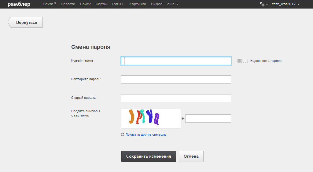 1. Прежде всего необходимо установить сложный пароль. Наведите курсор мыши на свой логин и в появившемся меню выберите Сменить пароль.