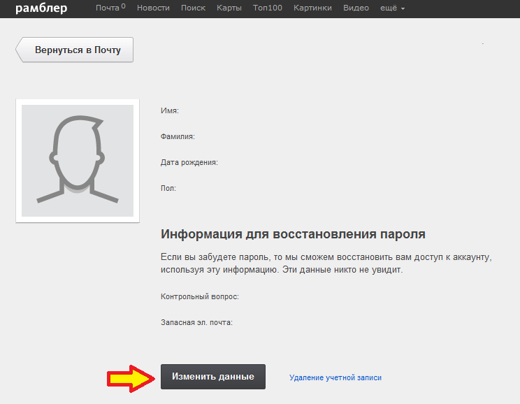 Наведите курсор мыши на свой логин и в появившемся меню выберите Моя учетная запись и нажмите Изменить данные.